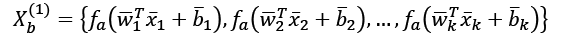 After the first layer (for simplicity, let's suppose that the activation function, fa(x), is always the same), the batch is transformed into the following: